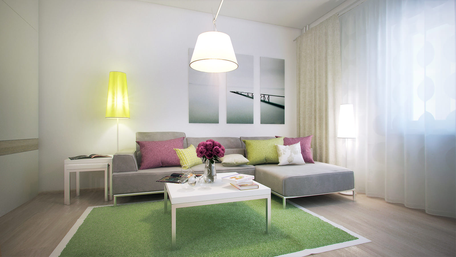 Pour un salon combiné à une chambre d'enfants, il est préférable de choisir des couleurs douces et lumineuses.