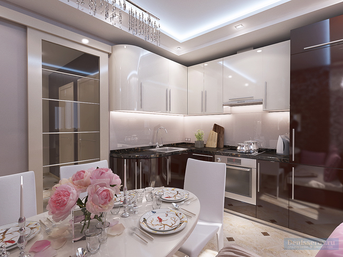 La couleur, le réaménagement, un minimum d'éléments intérieurs, le verre et les surfaces brillantes ont donné un intérieur spacieux, pratique et efficace.