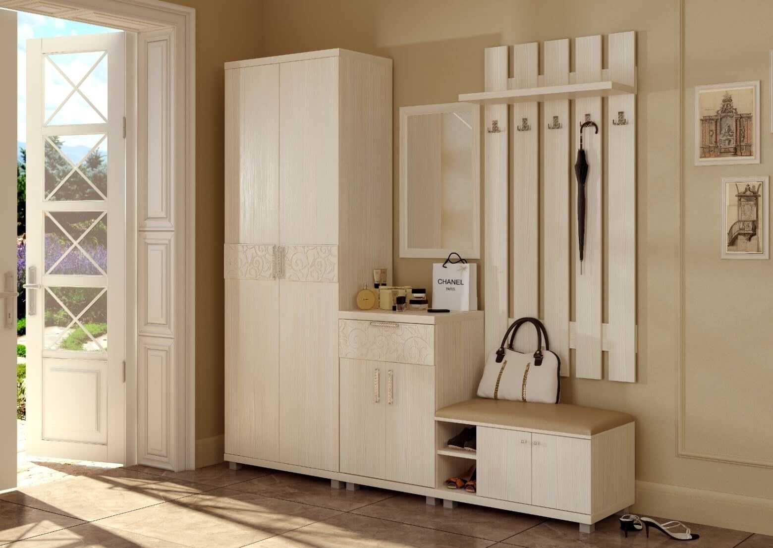 Des boîtes à chaussures fermées ont remplacé les étagères primitives pour des chaussures ouvertes. Ils sont produits principalement sous du bois de teintes traditionnelles, vernis et passe-partout. Dans les catalogues, vous pouvez trouver des ensembles compacts, qui peuvent inclure des étuis à crayons avec un cintre, des chaussures, des bancs ou des banquets.