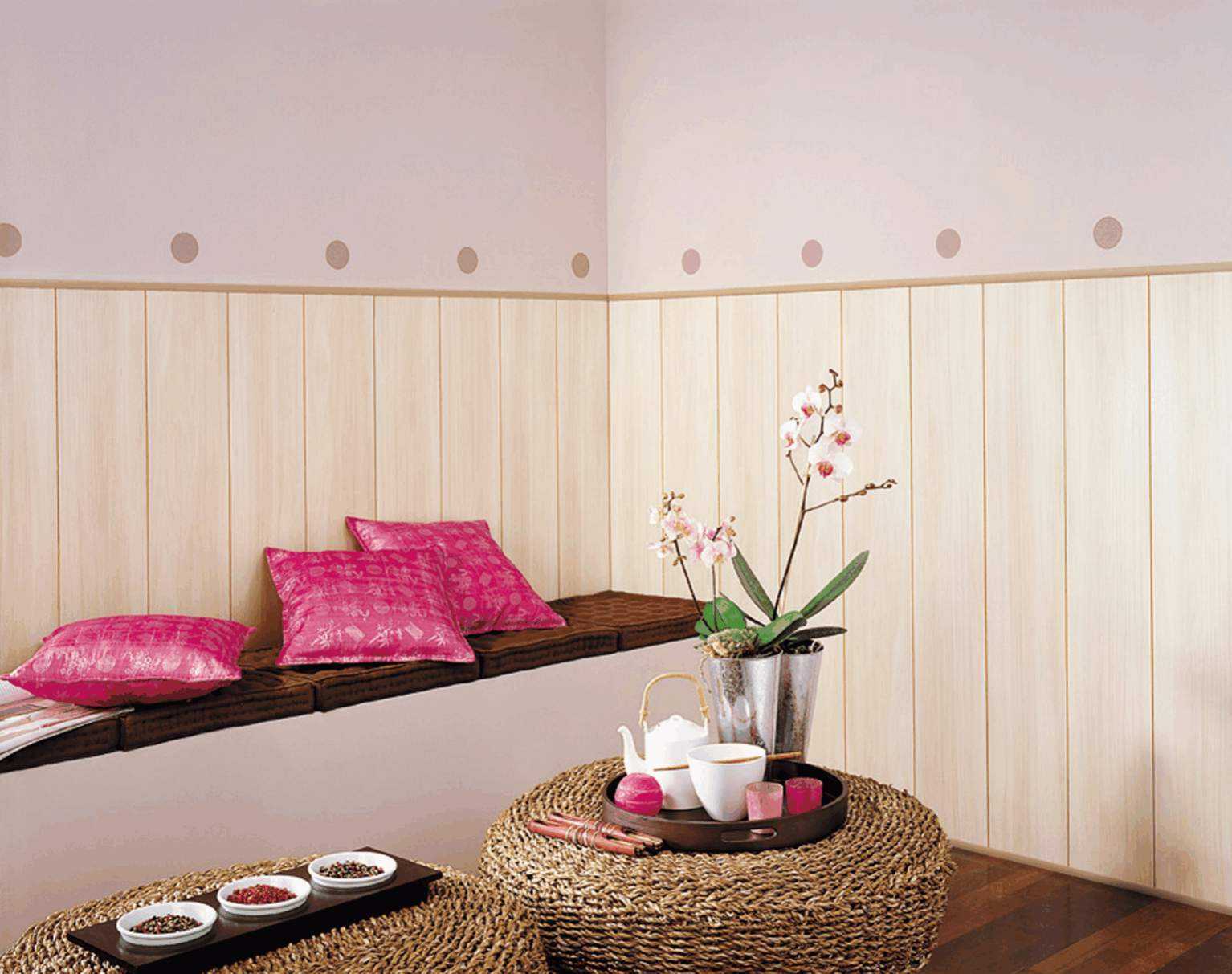 Sur les murs, vous pouvez coller du papier peint brillant