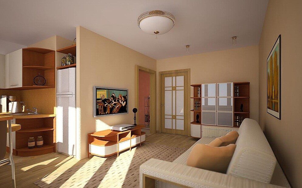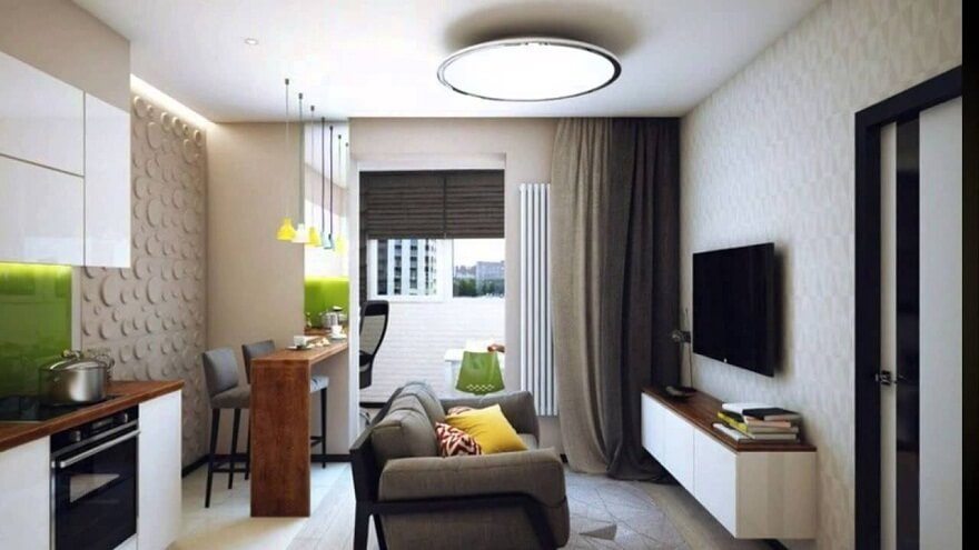 Un petit salon devrait inclure une cuisine, une pépinière et un espace de travail, une chambre à coucher. Cela semble à première vue impossible, comme le montre la pratique, les problèmes insolubles n’existent pas.