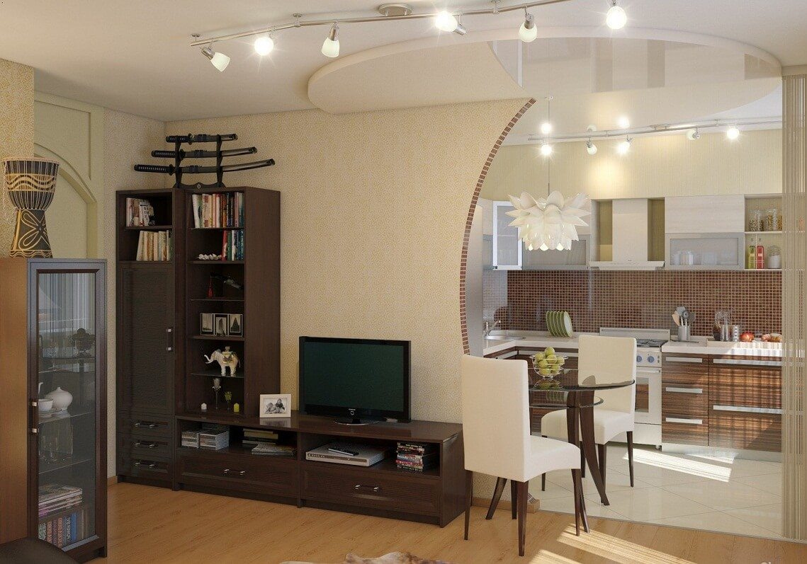 Si l'appartement se trouve dans une nouvelle maison, le réaménagement peut se faire sans aucun problème. L'option la plus appropriée est un studio. Ici, l'élément de séparation d'espace peut être un compteur de barres. Joue également le rôle d'une table à manger. Ou encore, installez une table de transformation dans la cuisine. Il peut servir d'élément pour manger ou, une fois plié, une table basse.