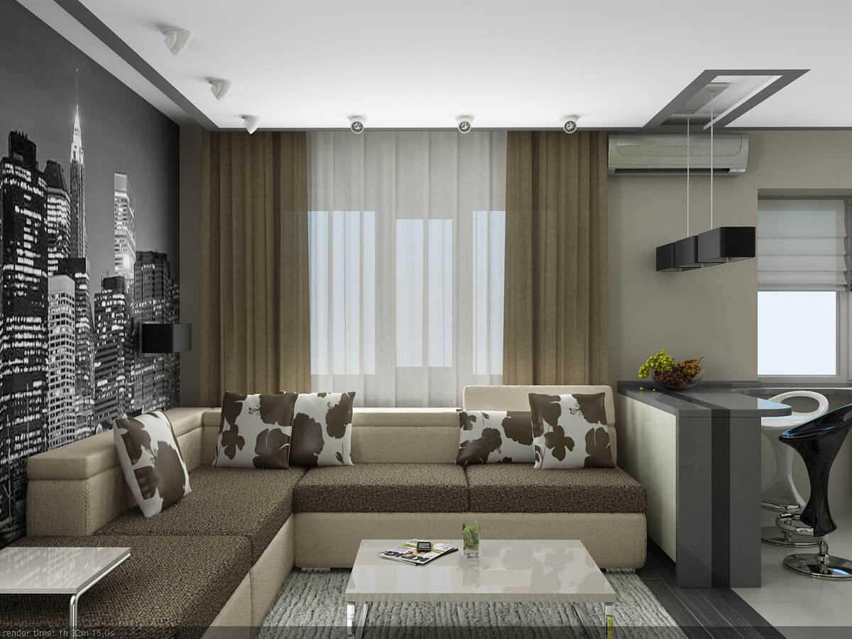 Le plus difficile est l'organisation compétente de l'espace du salon principal. L'intérieur d'un appartement d'une pièce implique une décision stylistique. Cela peut être minimalisme, hi-tech, classique. Mais le zonage devra encore être fait.