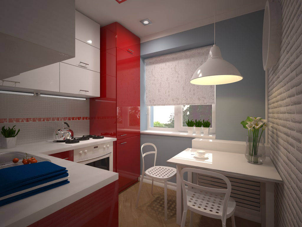 La salle à manger doit être organisée par la fenêtre, de préférence un modèle de la table, qui est fixé au mur, pliant si nécessaire. Un rebord de fenêtre dans une petite cuisine n’est pas fait pour les fleurs. Il devrait remplir des fonctions plus sérieuses. Si une large option, cela peut être une table ou une continuation de la zone de travail pour la cuisson.
