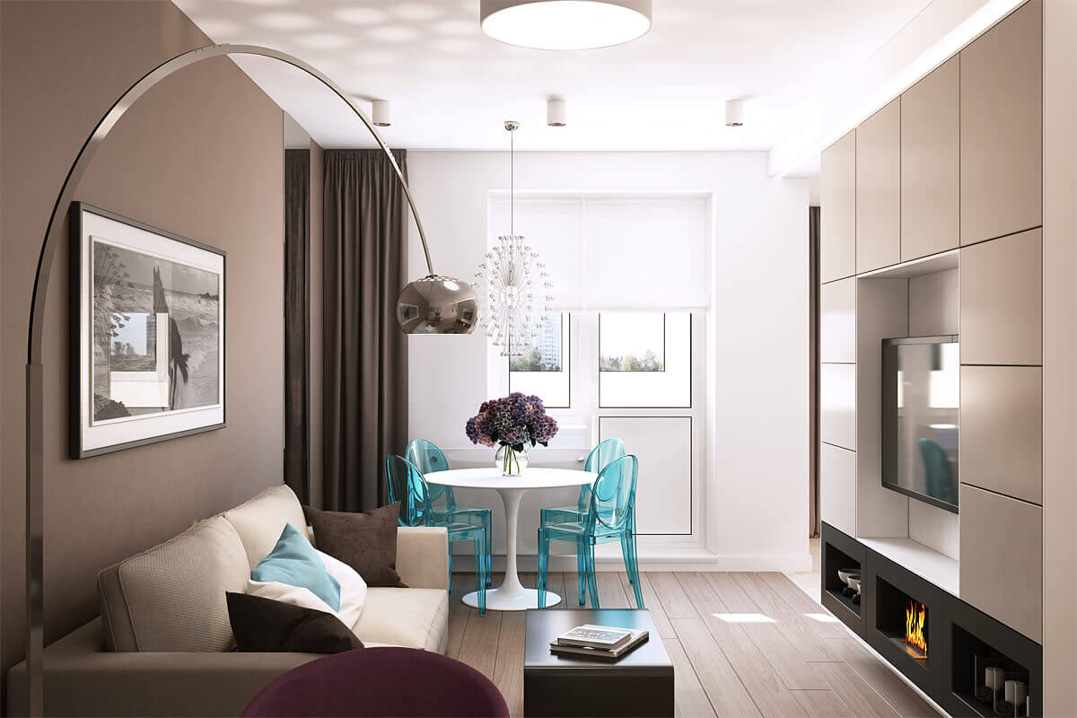 La plupart des concepteurs affirment que plus la longueur d'une pièce est grande, moins elle est utilisée de manière rationnelle. Une autre chose est quand la pièce est petite, mais vous voulez y rentrer le plus possible. Ensuite, les propriétaires commencent à rechercher le design le plus pratique d'un appartement d'une pièce, en réfléchissant à l'utilisation de chaque centimètre résidentiel.
