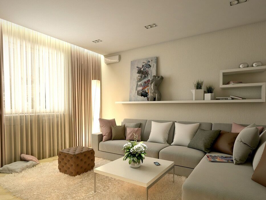 | Utilisation appropriée des éléments décoratifs et des textiles | Ne surchargez pas l'intérieur d'un appartement d'une pièce avec des statuettes et des cercueils de différentes tailles. Les fenêtres sont mieux décorées avec des tissus fins et légers ou des stores enrouleurs. |