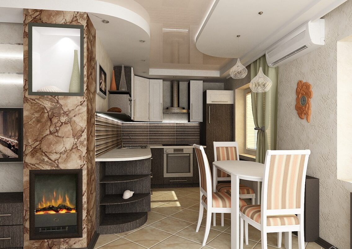 La cuisine de Khrouchtchev ne prend pas plus de 6-7 mètres carrés. m) Lorsque vous planifiez la conception d'un appartement d'une pièce, vous devez acheter des meubles avec appareils intégrés dans la cuisine.