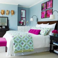 Où commencer à décorer la chambre? La première chose à laquelle vous devez faire attention est la disposition et l’emplacement des fenêtres dans la pièce. Lorsque vous choisissez un style et une palette de couleurs, il est préférable de vous éloigner de la disposition de la pièce et de la quantité de lumière. Si la pièce est petite et qu'il n'y a pas beaucoup de lumière, il est préférable de ne pas surcharger la pièce de détails et d'utiliser des couleurs claires dans la conception, en créant plusieurs accents lumineux ou sombres sous la forme de meubles ou de textiles. Si la pièce est grande et qu'il y a beaucoup de lumière, vous pouvez déjà laisser libre cours à votre imagination. Mais il ne faut pas oublier le sens des proportions: une pièce bien aménagée peut gâcher des textiles choisis sans saveur ou surcharger un grand nombre de meubles inutiles.