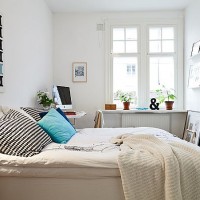 Pensez au mobilier dont vous avez besoin dans la chambre: bien sûr, un lit, une armoire, puis à votre discrétion. Planifier une chambre dans un petit appartement est un art particulier. Il est nécessaire de tout diviser en zones: une zone de loisirs, un travail, une lecture, une zone de stockage. Le zonage, bien sûr, conditionnel, en règle générale, cela se fait en couleur. La zone du chevet sera éclairée avec de petites lampes ou des bougeoirs. S'il s'agit d'un espace de travail, il convient d'augmenter le niveau d'éclairage.