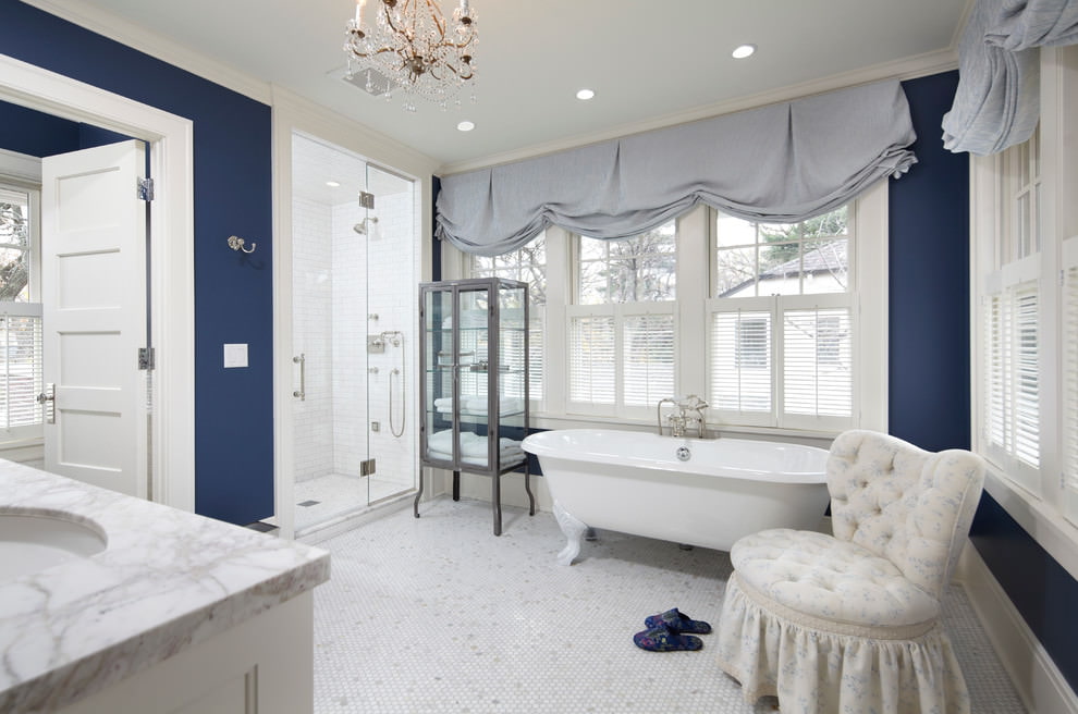 Sol brillant dans une salle de bain spacieuse de style classique