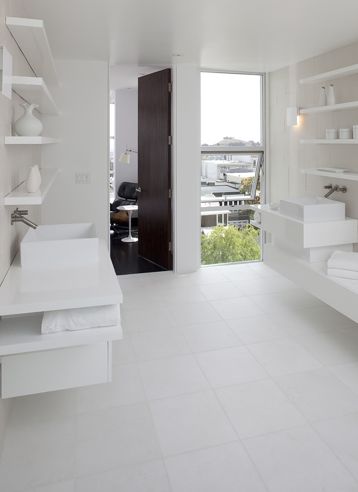 La combinaison parfaite d'une paire d'accents lumineux avec une finition neutre générale sur le sol, les murs et le plafond