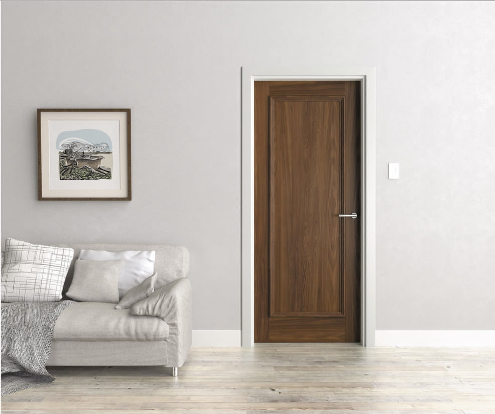 Une bonne combinaison d'une porte en bois massif brun clair avec une nuance de café et de lait