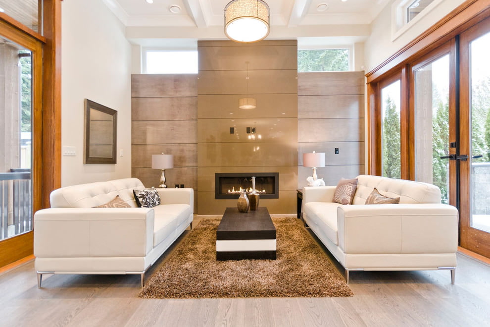 Salon avec sol en érable naturel