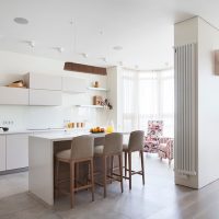 Si les options de revêtement sombre rendent l'appartement plus confortable et plus sérieux, la pièce aux couleurs vives a toujours l'air actualisée et diffuse la routine. Le design moderne utilise activement le jeu dans les contrastes et les surfaces monochromes. À cet égard, les nuances de blanc et leur combinaison sont activement utilisées dans les styles classiques modernes et nouveaux.