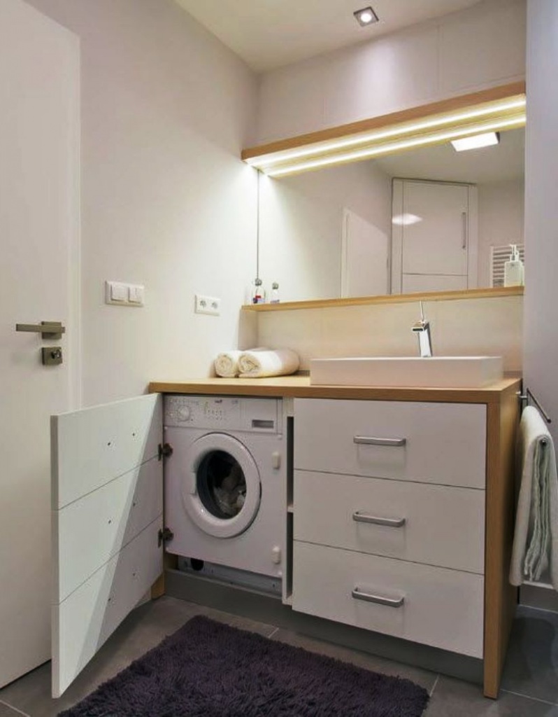 Les salles de bains de Khrouchtchev ne sont pas de tailles différentes. Parfois, vous pouvez à peine y placer une baignoire et un lavabo et, en dessous, une machine à laver étroite. Il est possible d'agrandir un peu la pièce en raison de la démolition du mur en le combinant avec la salle de bain. Mais dans ce cas, vous devez adhérer au minimalisme, ne ramasser que le nécessaire et ne pas vous focaliser sur le décor.