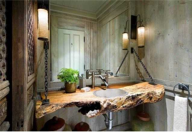 - Près du lavabo. Pour créer une combinaison harmonieuse, vous devez les connecter à l'aide d'un comptoir. Accrocher un miroir en trois dimensions par le haut.