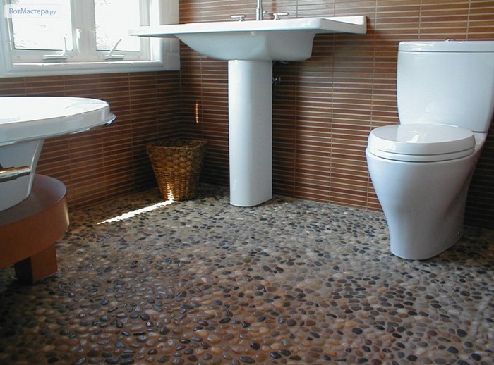 - Sol glissant. Le carrelage est populaire pour de telles salles. Et en choisissant le bon modèle pour le sol, beaucoup oublient que le critère principal n’est pas le design, mais la présence d’un revêtement antidérapant. Certains décident de placer un matériau brillant, complètement lisse. En fin de compte, lorsque l'eau entre dans l'eau, le sol se transforme littéralement en une patinoire. De telles erreurs peuvent entraîner des blessures si vous agissez avec négligence. Par conséquent, lors de l'achat d'une tuile, assurez-vous qu'elle est traitée avec un composé antidérapant spécial, ce qui rend le produit un peu rugueux. Laissez une finition brillante pour les murs.