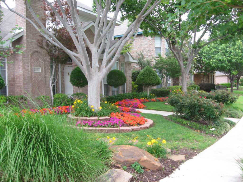 Afin de ne pas encombrer le paysage, essayez de ne pas en faire trop avec des plantes ornementales. La solution optimale est une pelouse impeccable et deux ou trois types de fleurs ou de bas arbustes. Si vous voulez quelque chose de plus ambitieux, il est préférable de confier cette question à des professionnels.