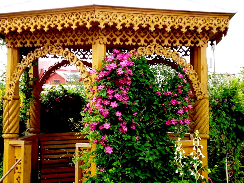 Lors de la décoration d'un pavillon d'été, les variétés suivantes sont idéales pour les fleurs: