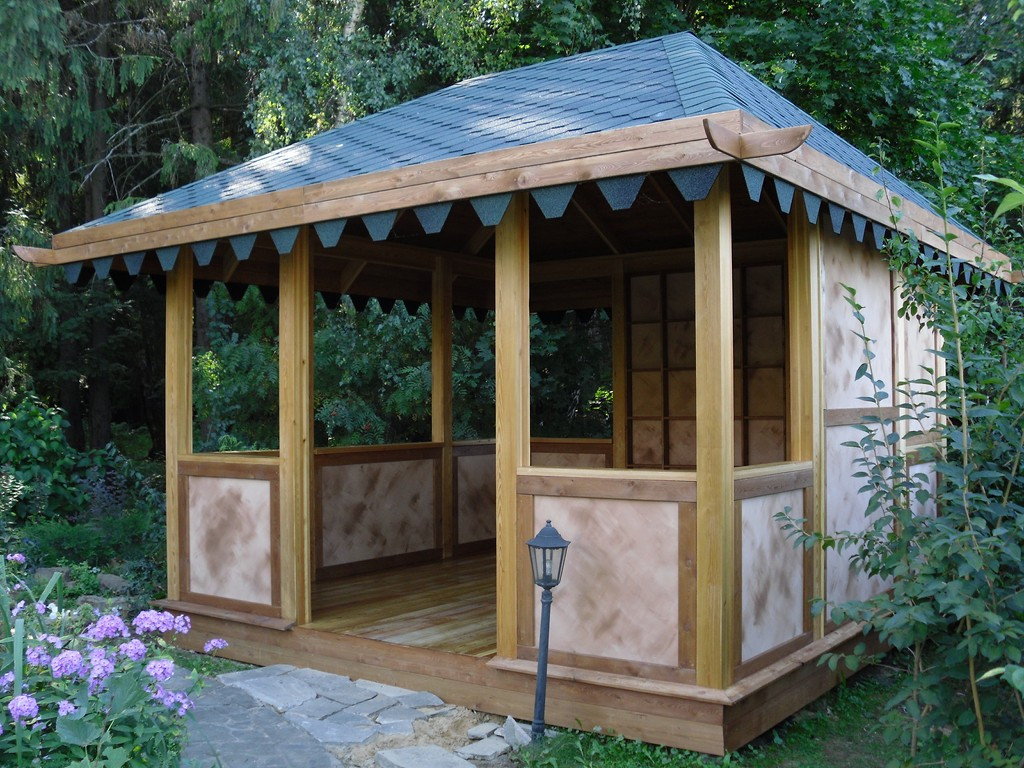 Le toit joue un rôle majeur dans la conception du gazebo de style japonais