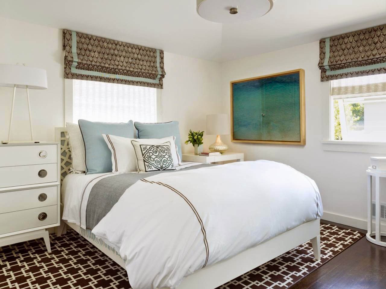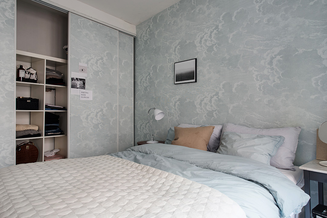 Cette couleur aux couleurs froides peut facilement être réalisée dans une chambre ensoleillée avec des fenêtres au sud.