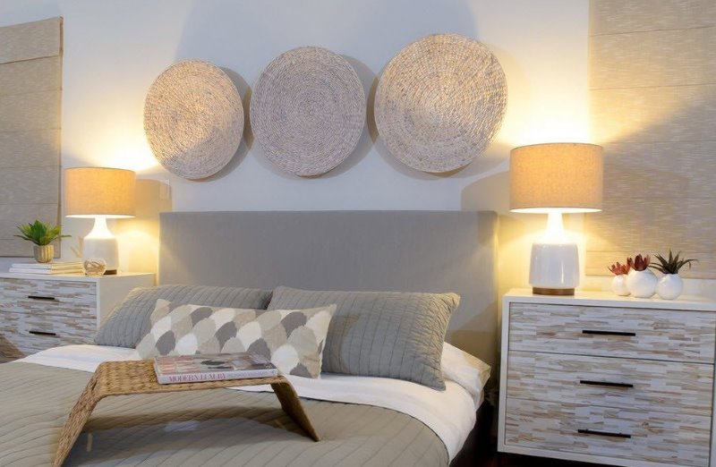 Utilisez deux à trois couleurs en sourdine. Concentrez-vous sur la décoration. Chaque style comprend ses propres méthodes de décoration: peintures, tapisseries, textiles, oreillers, fleurs, bougies. Choisissez à votre goût. Vous pouvez faire vos propres objets de décoration. Des photos, des figurines ou des peintures murales ajouteront une atmosphère à la chambre à coucher, la rendront individuelle, complète.