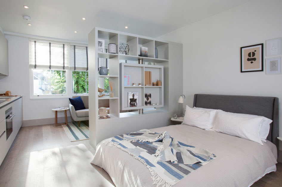 - Rideaux de zonage. Les rideaux fixés aux murs séparent une partie de la pièce en totalité ou en partie.