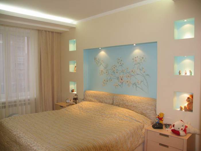 Pour un lieu de repos, vous devez choisir des couleurs qui raviront les yeux, vous aideront à vous détendre. Évitez les teintes vives et toxiques. Toujours se concentrer sur le style choisi.