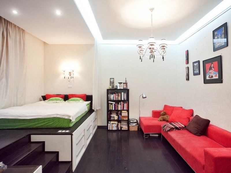 - Zonage de couleur. Un lieu pour dormir et un lieu de travail sont décorés de différentes couleurs.