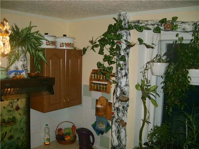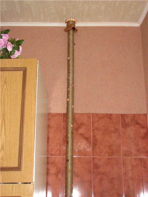 Un système de chauffage fraîchement peint doit être tressé autour d'une corde rigide (cordon coloré) imitant ainsi un tronc d'arbre (palmier). Des feuilles artificielles, de véritables branches d’arbres et des anneaux de bois viendront compléter le tableau. De plus, vous pouvez apporter des éléments de décoration originaux déjà présents dans d'autres pièces, soulignant ainsi le caractère commun du style.