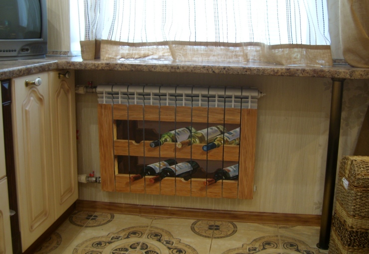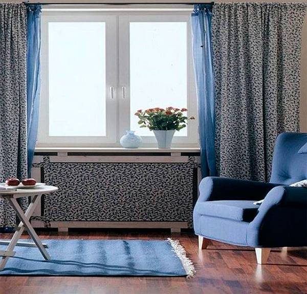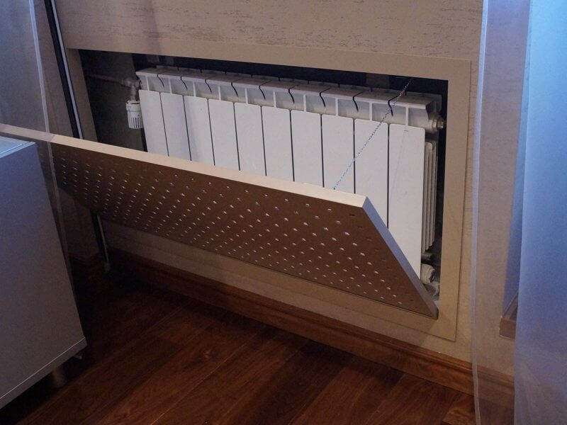 Si le système de chauffage est tellement ennuyeux que vous souhaitez le cacher complètement aux yeux, les solutions suivantes vous conviennent. Ils sont un peu plus compliqués que ceux indiqués ci-dessus, principalement en raison du fait qu'ils sont destinés à un intérieur luxueux et coûteux, pour lesquels la créativité faite par soi-même est catégoriquement contre-indiquée.
