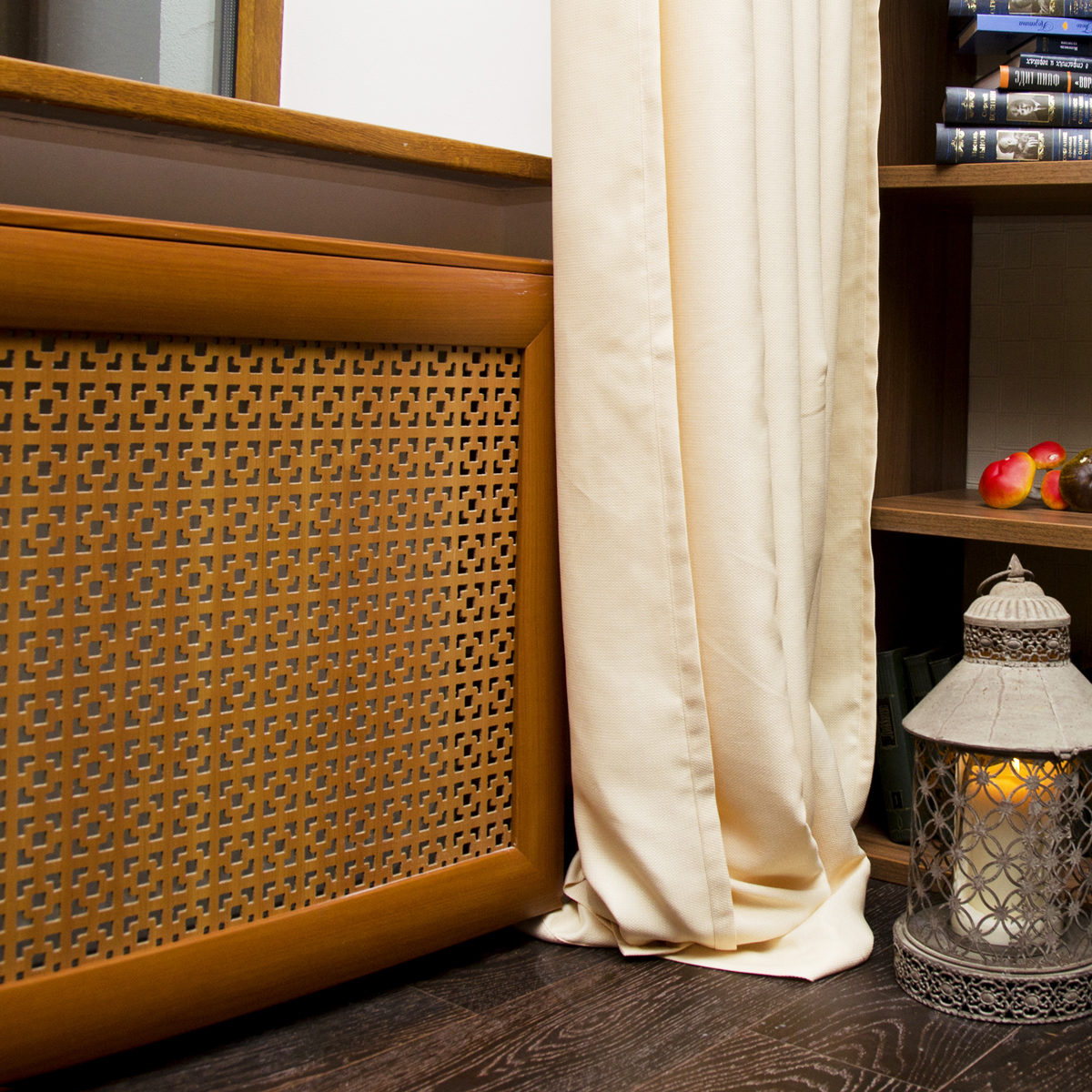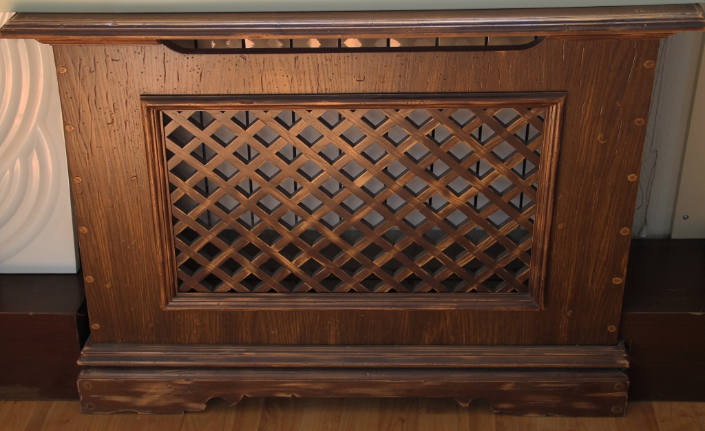 Cet appareil est parfait pour la décoration. Il cache avec succès les radiateurs encombrants et complète parfaitement l'intérieur. Cependant, cela n’est pas pratique dans la pratique. L'écran empêche tout accès libre à la batterie, dégrade le transfert de chaleur, ralentit la circulation des masses d'air chaud. Par conséquent, si vous décidez d'acheter quelque chose de similaire, il est préférable de privilégier les panneaux perforés: vous ne rencontrerez pas de problème de conductivité thermique.