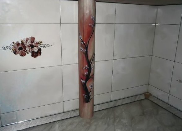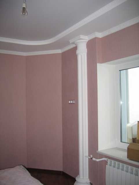 Faux colonnes décoratives - en polyuréthane. Facile à installer: fixé avec des clous liquides. Facilement démonté si nécessaire inspection des tuyaux de chauffage. Organiquement s'intégrer dans un intérieur raffiné; solution créative pour la décoration de la contremarche.